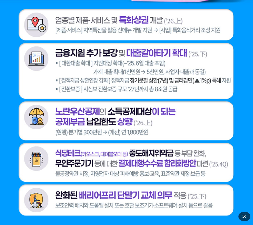 이번 소상공인 지원 확대는 단순한 금융정책이 아니라, **생존과 성장, 그리고 일상의 불편까지 해결**하려는 전방위 지원입니다.