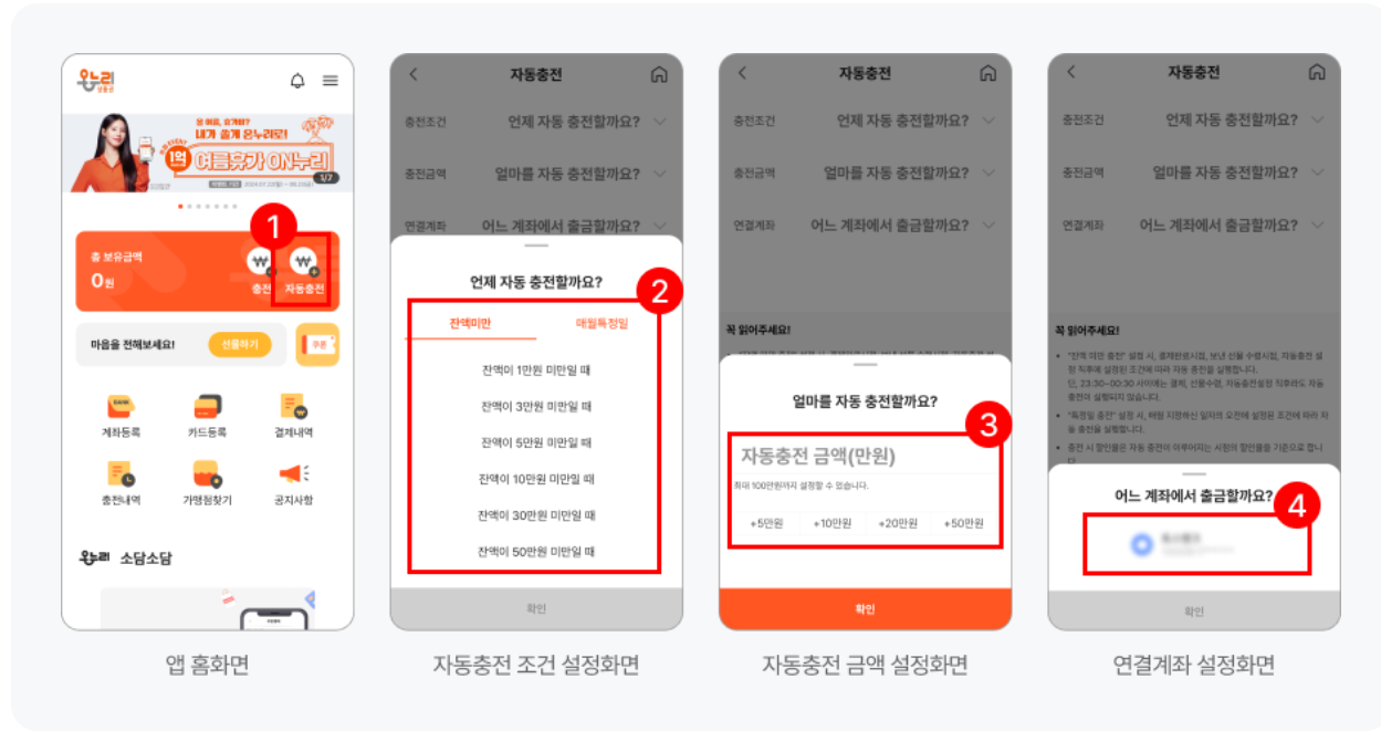 매번 직접 충전하기 번거롭다면 자동충전 기능을 활용하세요.